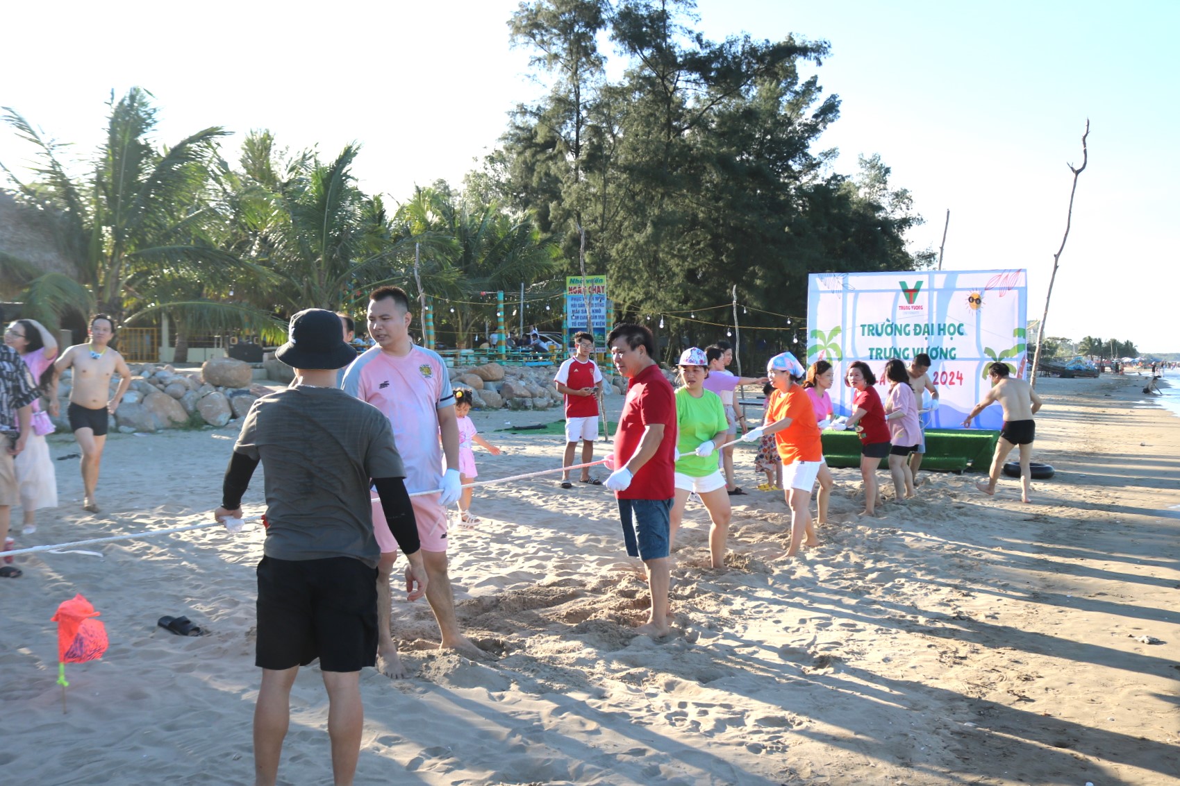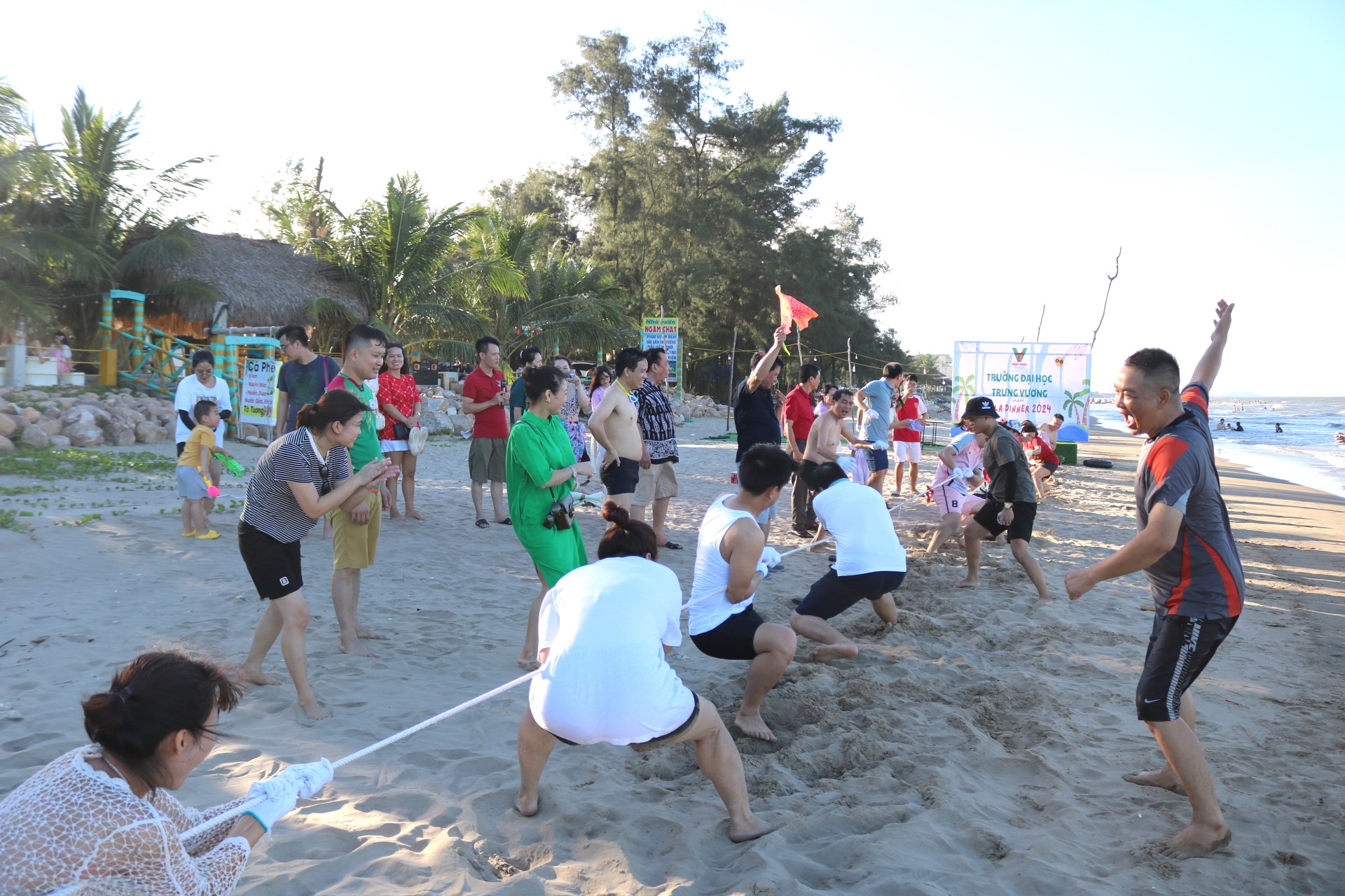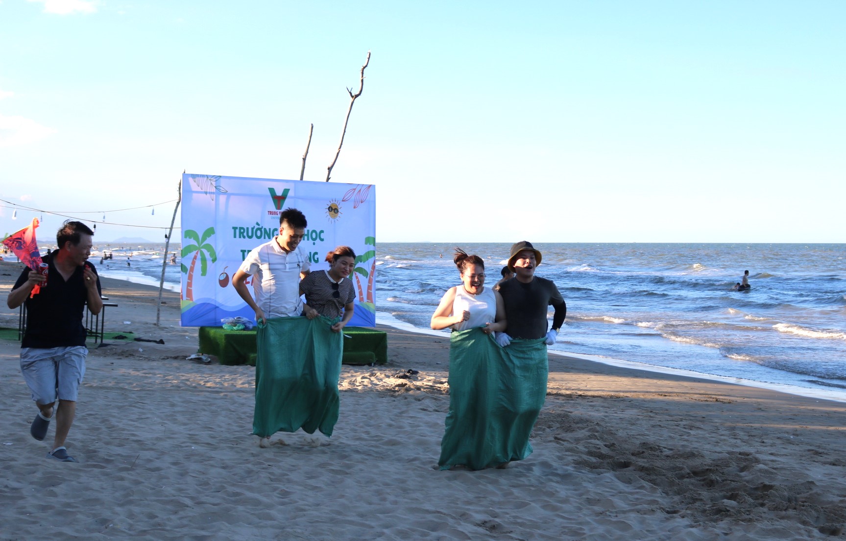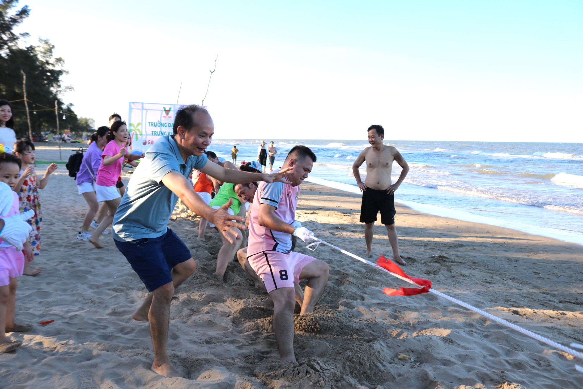 Chương trình du hè 2024 được thiết kế với nhiều hoạt động sôi nổi và ý nghĩa. Ngay từ những giờ đầu tiên, các thầy cô và nhân viên đã tham gia các trò chơi thể thao trên bãi biển như đá bóng, kéo co và nhảy bao bố. Không khí cạnh tranh nhưng vui vẻ, sôi động khiến ai cũng cảm thấy hào hứng và tràn đầy năng lượng. Những tiếng cười giòn tan, những giọt mồ hôi và những nỗ lực không ngừng đã tạo nên những kỷ niệm đáng nhớ cho mỗi người.