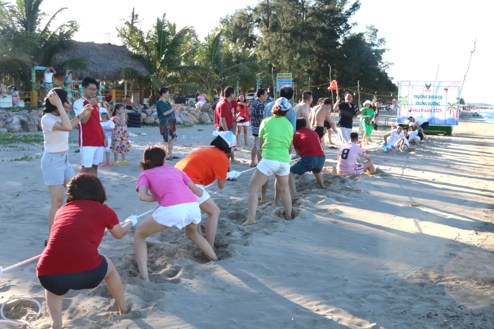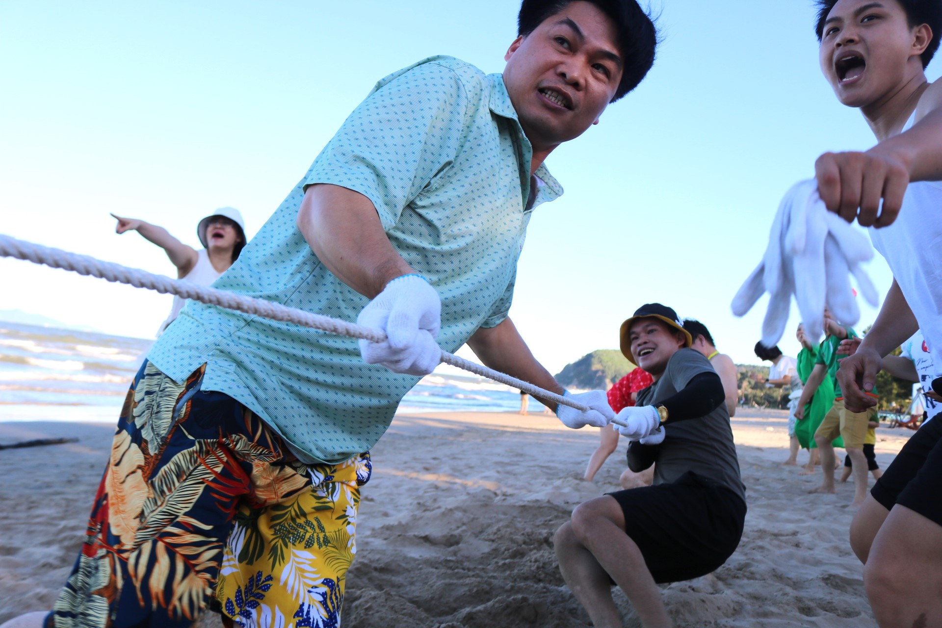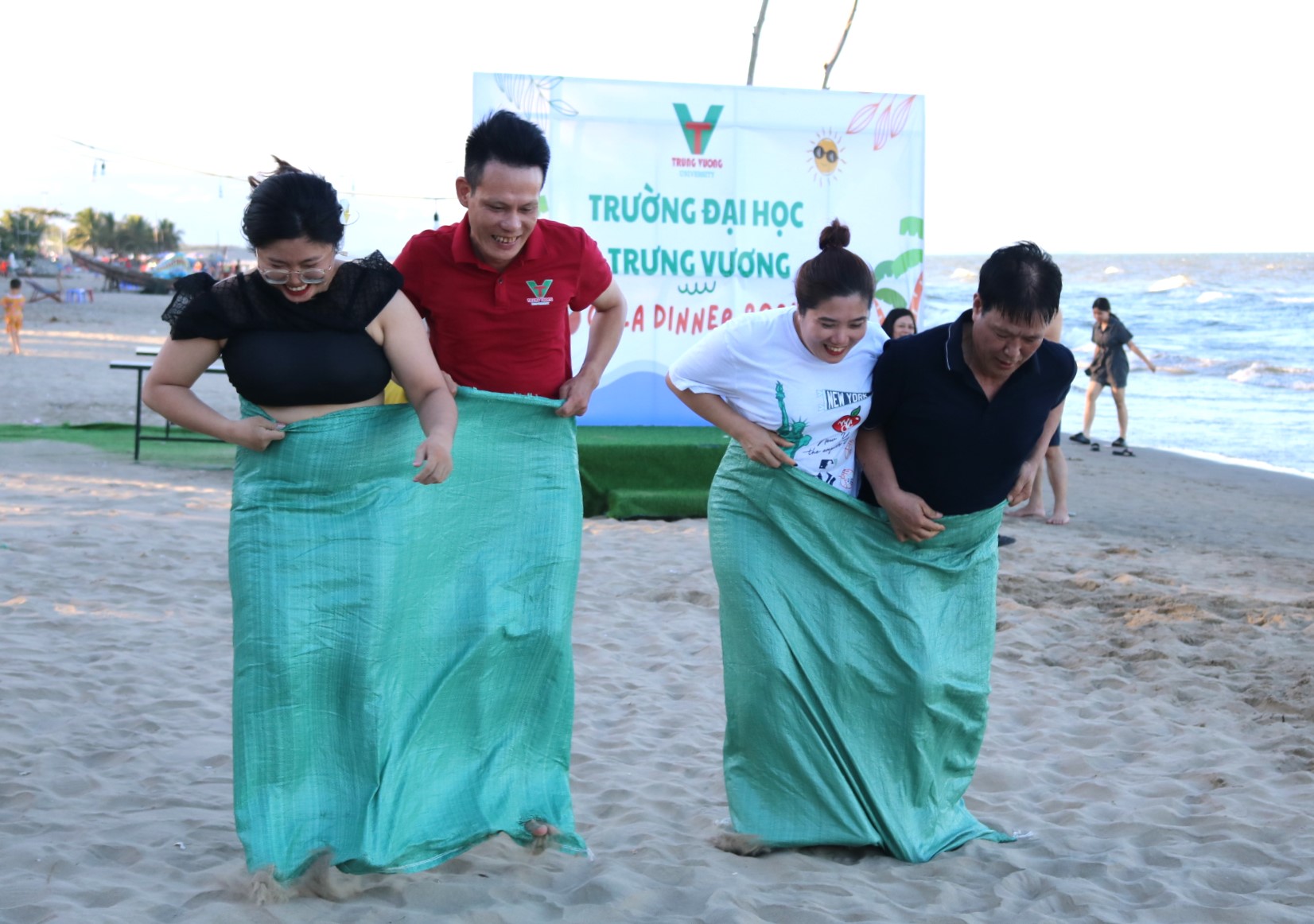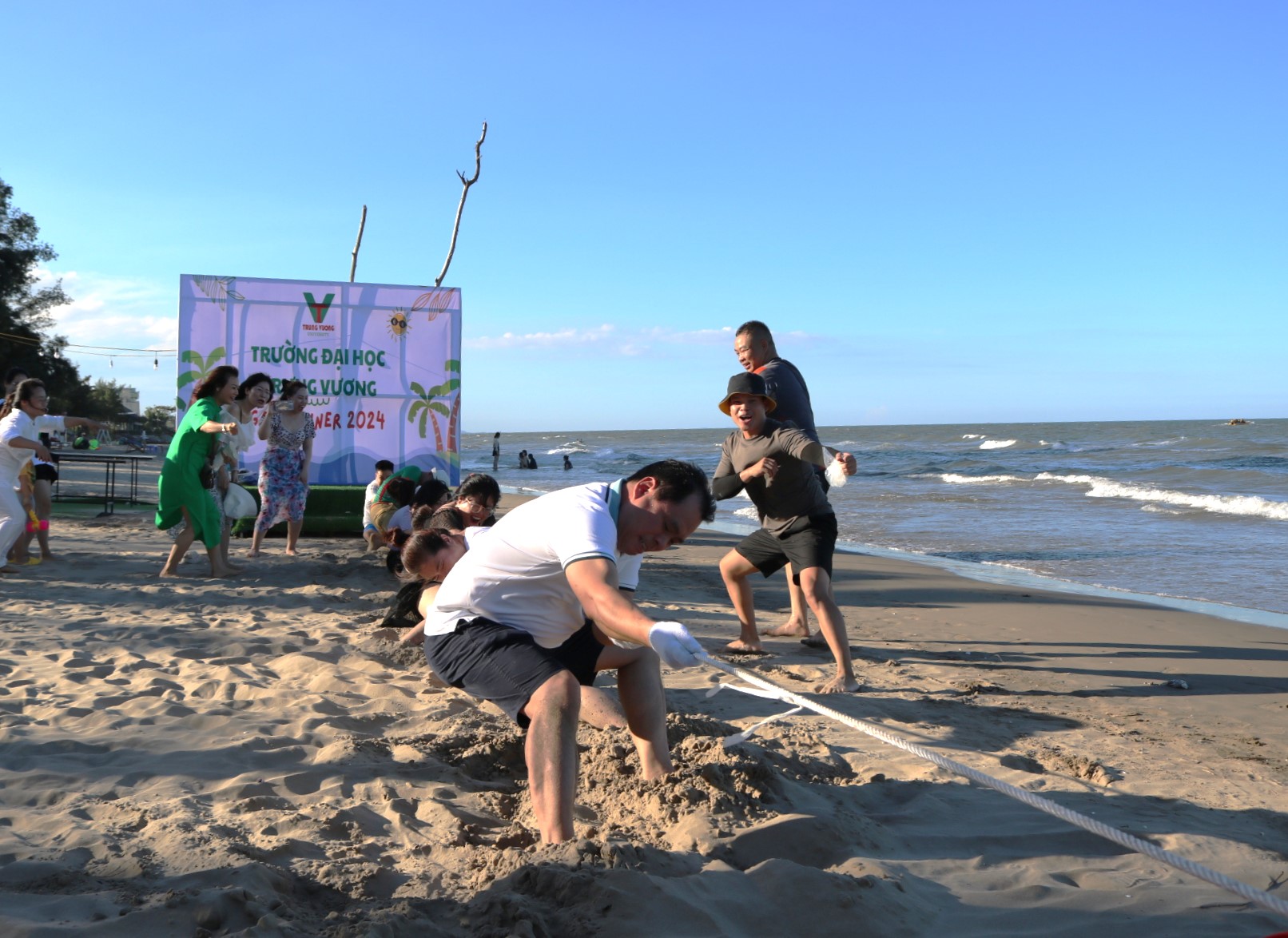 Chương trình du hè 2024 được thiết kế với nhiều hoạt động sôi nổi và ý nghĩa. Ngay từ những giờ đầu tiên, các thầy cô và nhân viên đã tham gia các trò chơi thể thao trên bãi biển như đá bóng, kéo co và nhảy bao bố. Không khí cạnh tranh nhưng vui vẻ, sôi động khiến ai cũng cảm thấy hào hứng và tràn đầy năng lượng. Những tiếng cười giòn tan, những giọt mồ hôi và những nỗ lực không ngừng đã tạo nên những kỷ niệm đáng nhớ cho mỗi người.