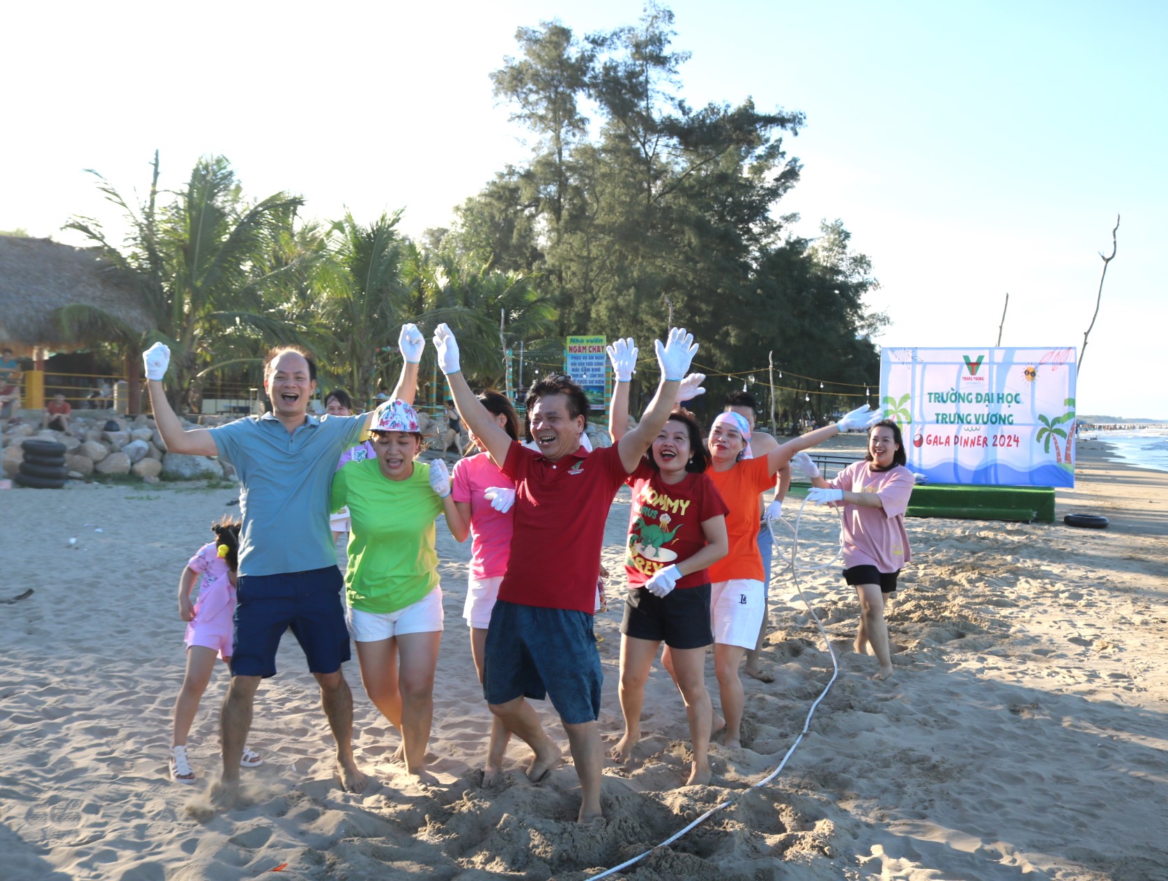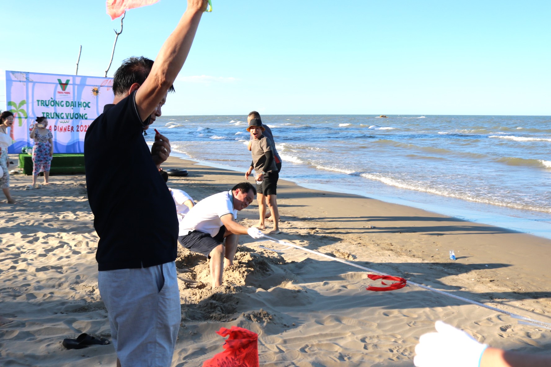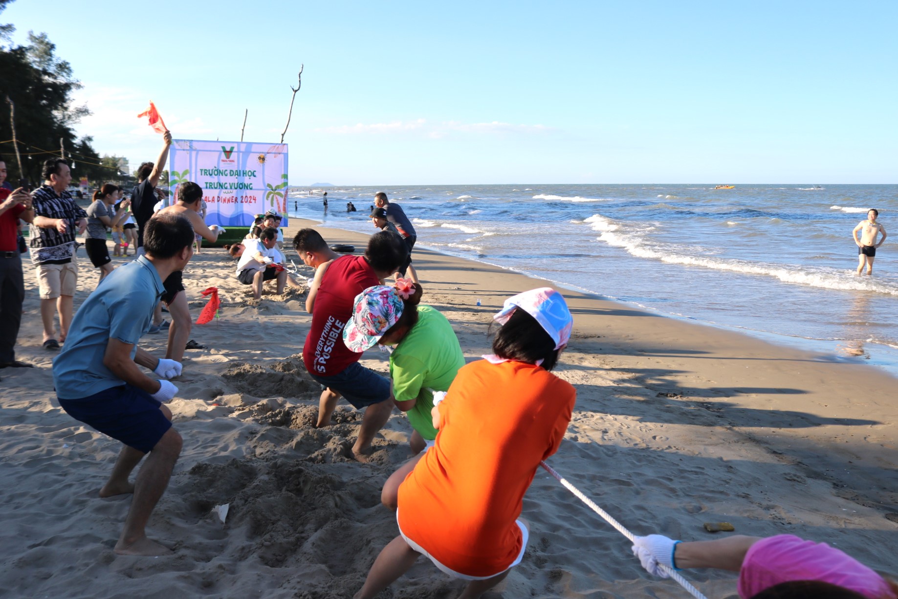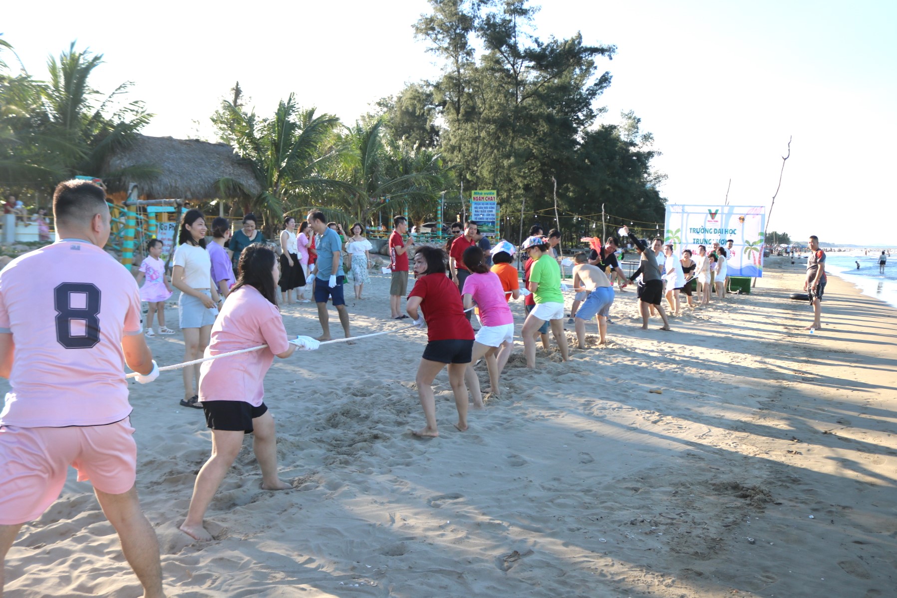 Chương trình du hè 2024 được thiết kế với nhiều hoạt động sôi nổi và ý nghĩa. Ngay từ những giờ đầu tiên, các thầy cô và nhân viên đã tham gia các trò chơi thể thao trên bãi biển như đá bóng, kéo co và nhảy bao bố. Không khí cạnh tranh nhưng vui vẻ, sôi động khiến ai cũng cảm thấy hào hứng và tràn đầy năng lượng. Những tiếng cười giòn tan, những giọt mồ hôi và những nỗ lực không ngừng đã tạo nên những kỷ niệm đáng nhớ cho mỗi người.
