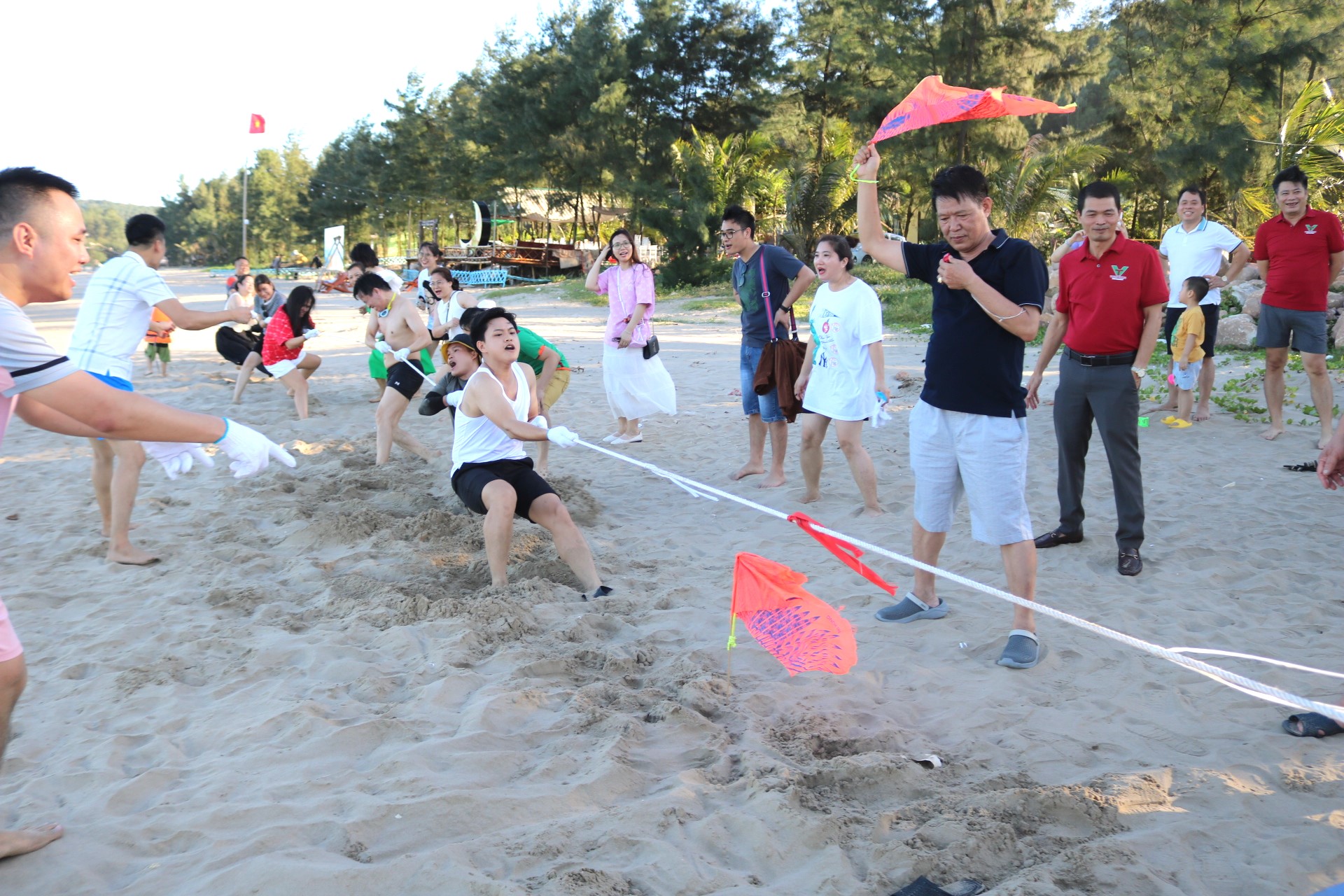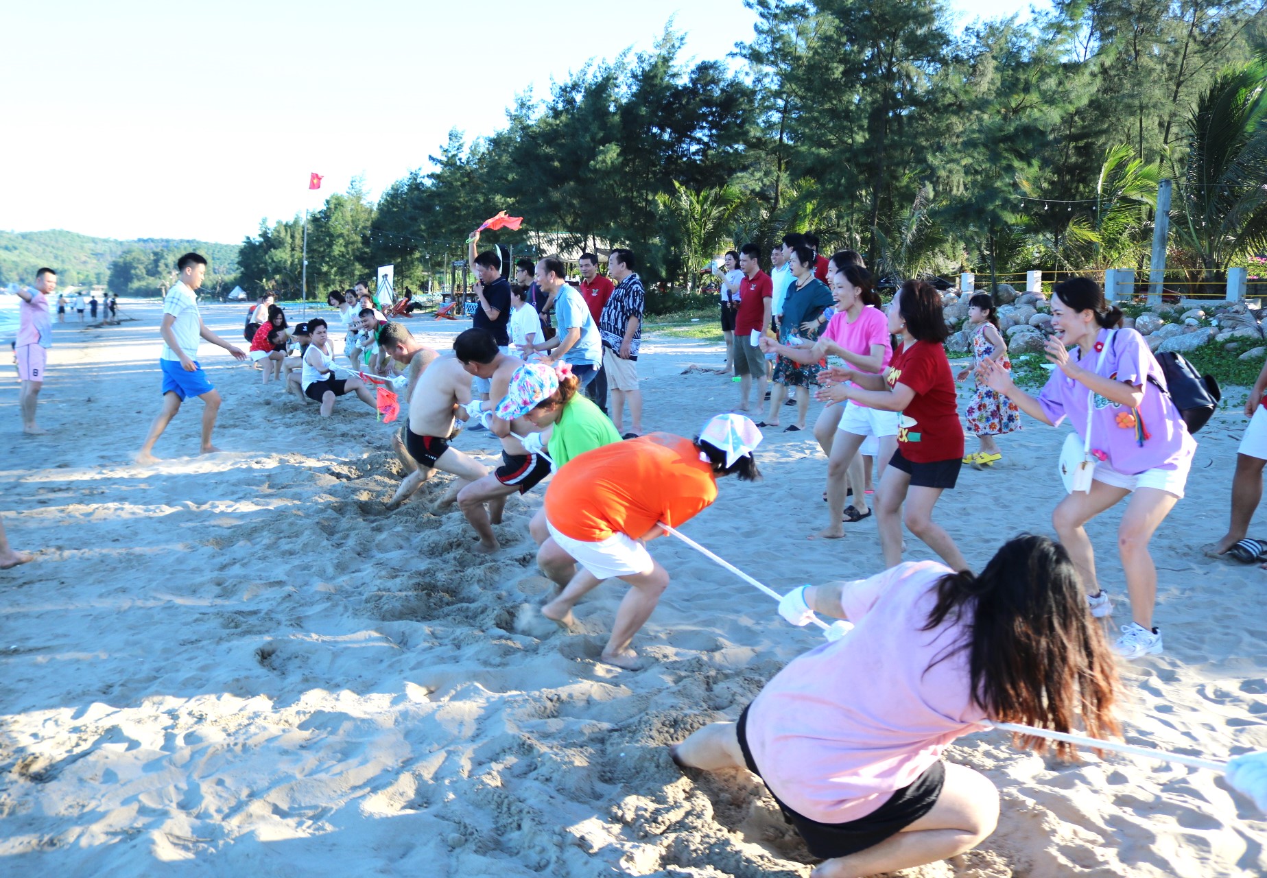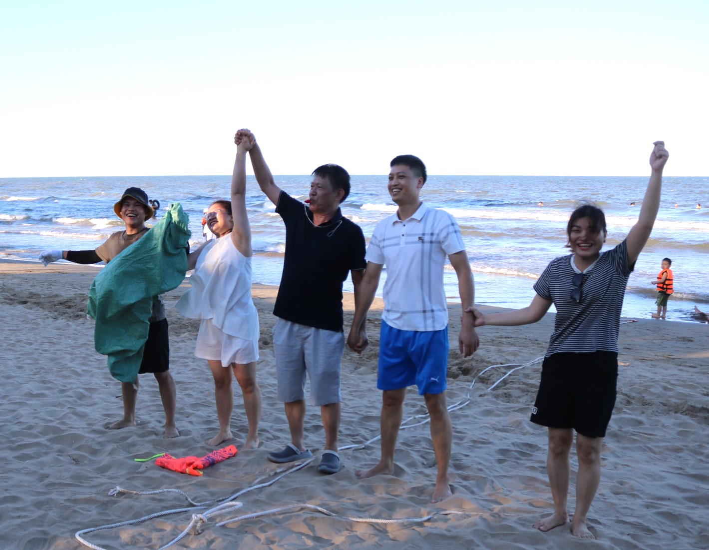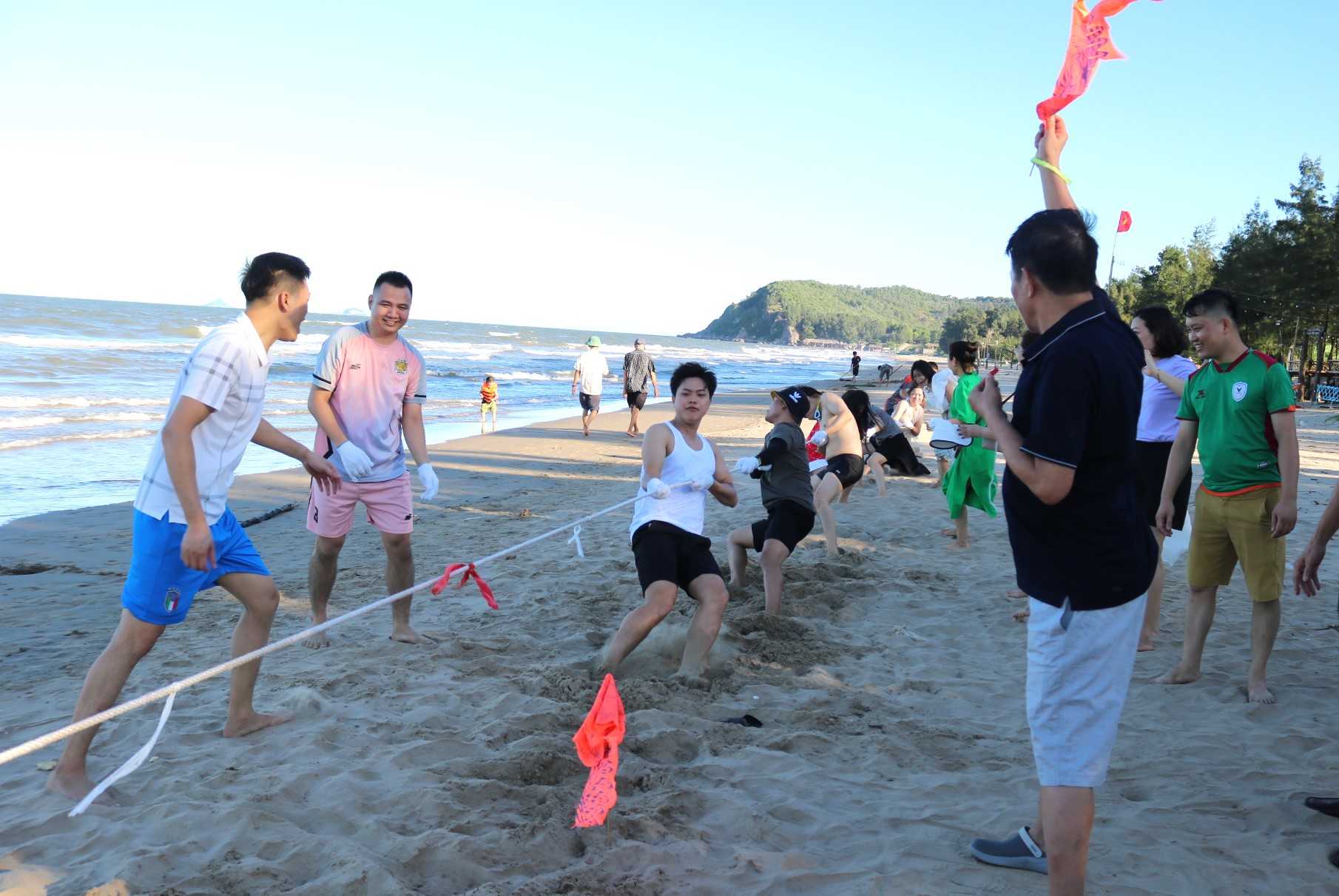 Chương trình du hè 2024 được thiết kế với nhiều hoạt động sôi nổi và ý nghĩa. Ngay từ những giờ đầu tiên, các thầy cô và nhân viên đã tham gia các trò chơi thể thao trên bãi biển như đá bóng, kéo co và nhảy bao bố. Không khí cạnh tranh nhưng vui vẻ, sôi động khiến ai cũng cảm thấy hào hứng và tràn đầy năng lượng. Những tiếng cười giòn tan, những giọt mồ hôi và những nỗ lực không ngừng đã tạo nên những kỷ niệm đáng nhớ cho mỗi người.