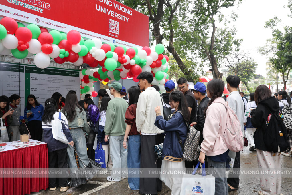 At the Admissions and Career Guidance Fair held at Hanoi University of Science and Technology, the consultation booth of Trung Vuong University (TV-UNI) attracted a large number of Grade 12 students eager to learn more about academic programs, the learning environment, and university admission methods for 2026.