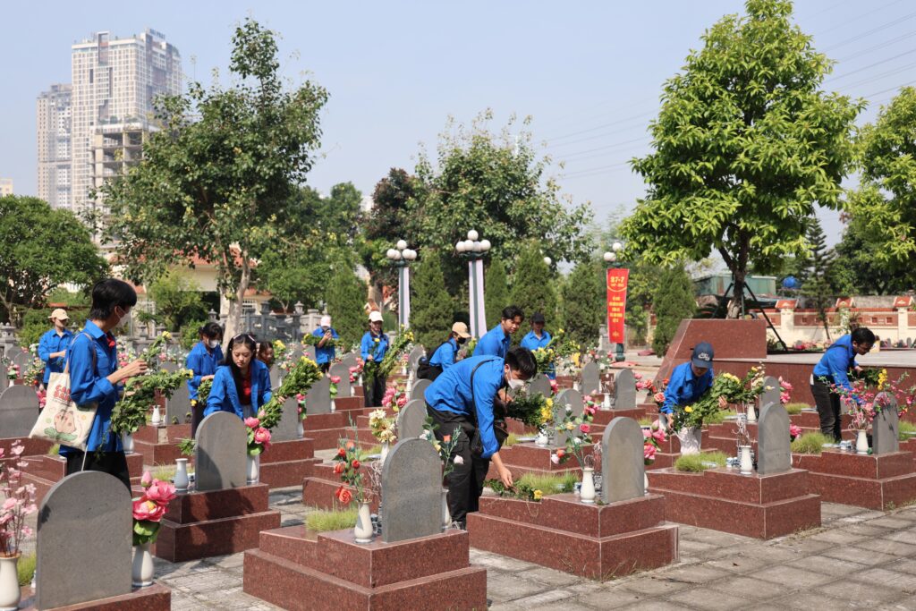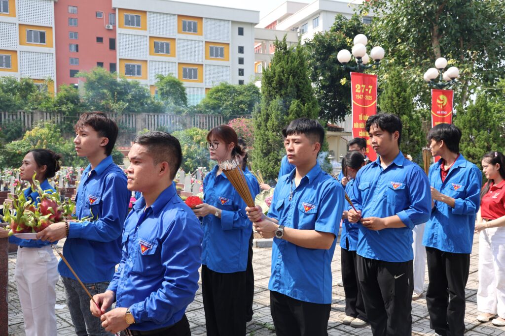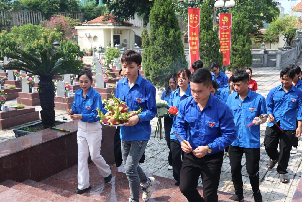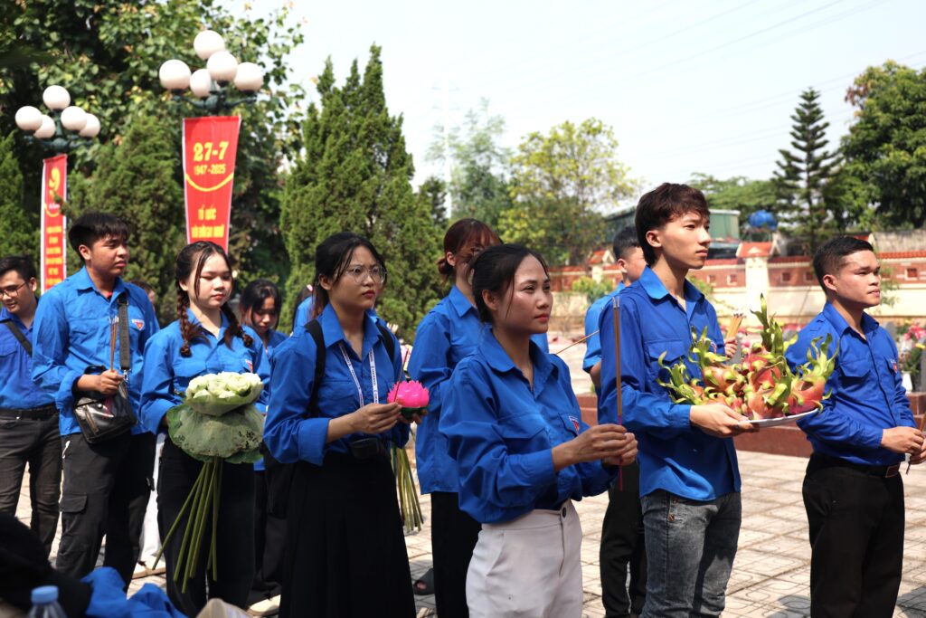 Morning of July 19, 2025 – In commemoration of the 78th anniversary of the Day of Martyrs and Wounded Soldiers (July 27, 1947 – July 27, 2025), the Youth Union of Trung Vuong University organized a meaningful tribute activity at Ha Dong Martyrs’ Cemetery (Van Phuc, Ha Dong, Hanoi).