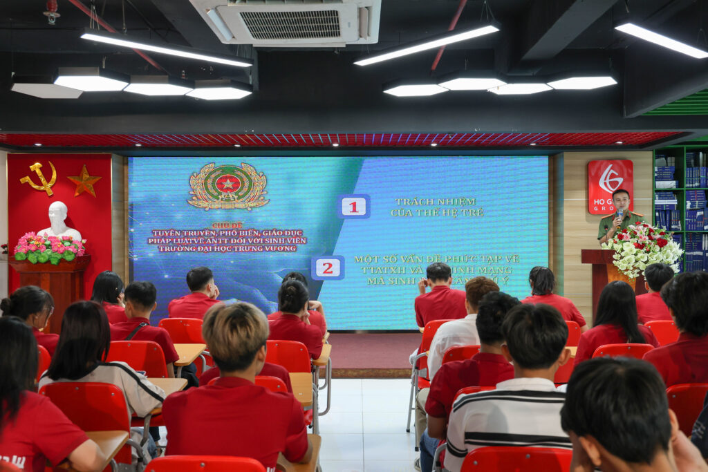 Continuing the program, representatives from the PA03 Division of the Hanoi Police Department presented the topic “Cybersecurity and Online Safety.” With many real-world examples, the session raised students’ awareness of digital risks – from online scams and account impersonation to personal data protection. As a result, students gained essential skills to protect themselves and to use the Internet safely and responsibly.