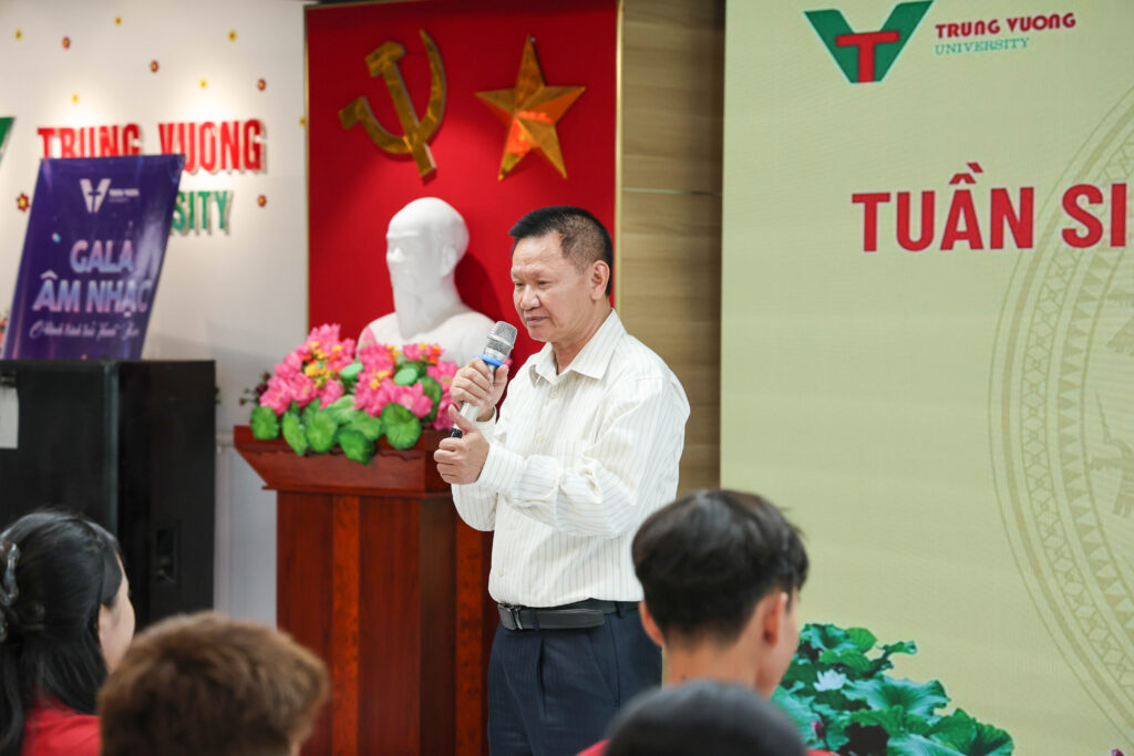 On the second day of Orientation Week, Dr. Hoàng Văn Bình – Vice Rector, together with Dr. Nguyễn Thị Hoàn – Dean of the Faculty of General Studies, delivered a special session on political and ideological education. The content not only helped students understand the importance of political awareness and a healthy lifestyle but also encouraged them to adopt a serious learning attitude and a strong sense of community responsibility.