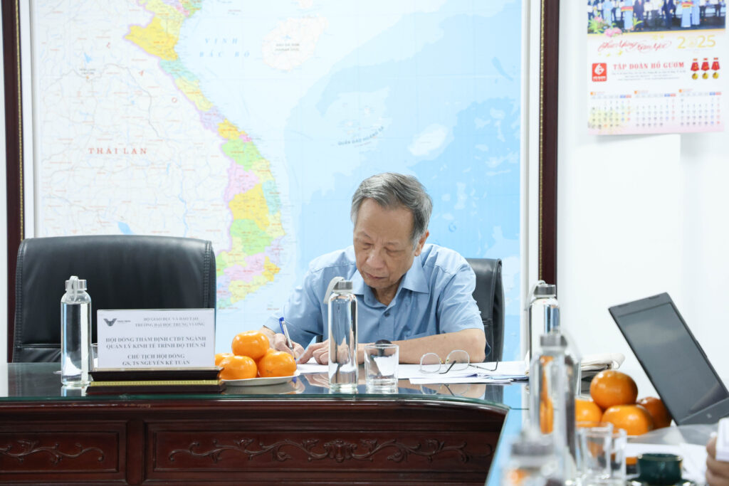 At the conclusion of the session, with a spirit of professionalism, openness, and constructive discussion, the Council unanimously approved the Doctoral Training Program in Economic Management developed by Trung Vuong University.