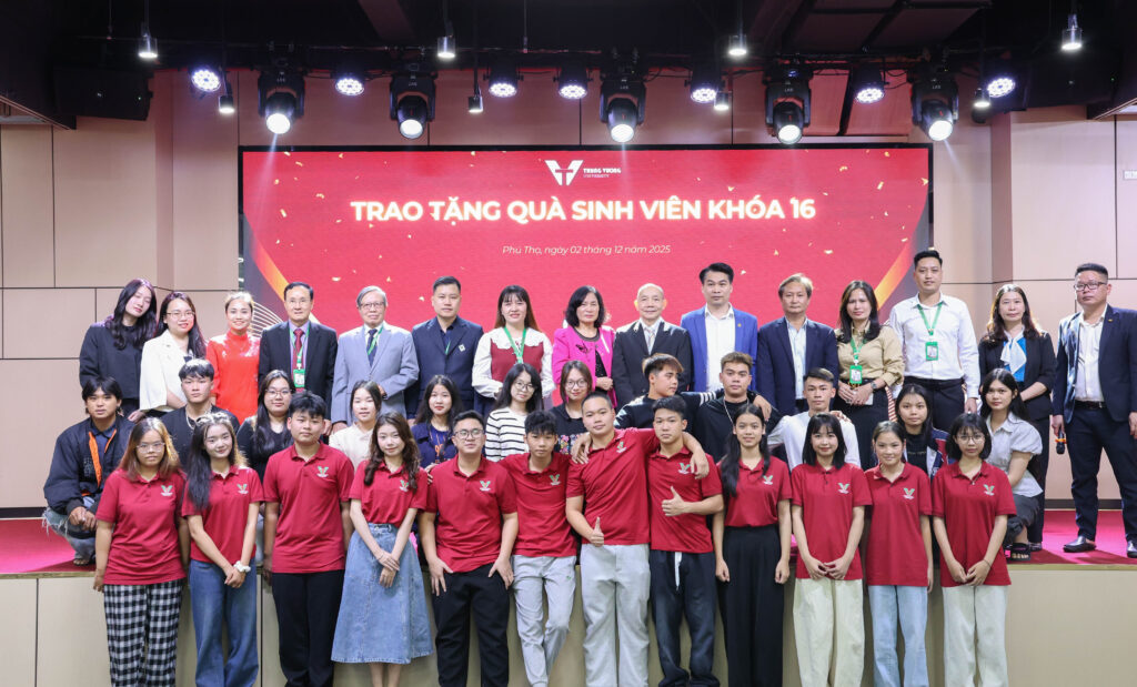 On December 2, 2024, Trung Vuong University organized a gift-giving program for freshmen of Cohort 16, marking an important companion activity at the beginning of their university journey. The program carries practical significance, demonstrating the University’s care, responsibility, and commitment to supporting and encouraging the new generation of students.