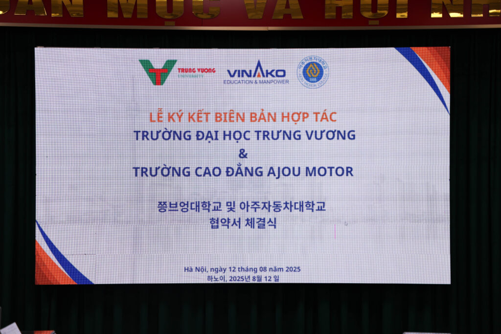 August 12, 2025 – Trưng Vương University has officially signed a Memorandum of Understanding (MOU) with Ajou Motor College – a prestigious vocational college in Korea specializing in advanced technical training in the automotive field.