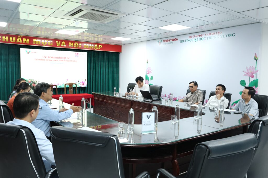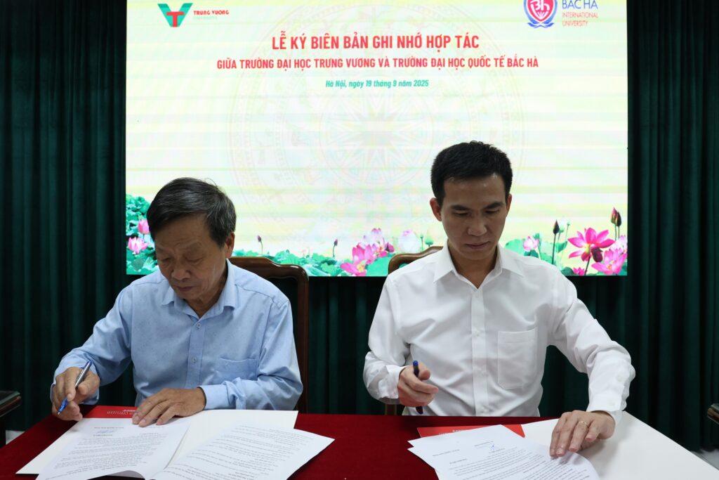 Chiều ngày 19/09/2025, lễ ký kết Biên bản ghi nhớ hợp tác (MOU) giữa Trường Đại học Trưng Vương và Trường Đại học Quốc tế Bắc Hà đã được tổ chức trọng thể, đánh dấu bước tiến quan trọng trong việc tăng cường hợp tác đào tạo và nghiên cứu khoa học giữa hai trường.