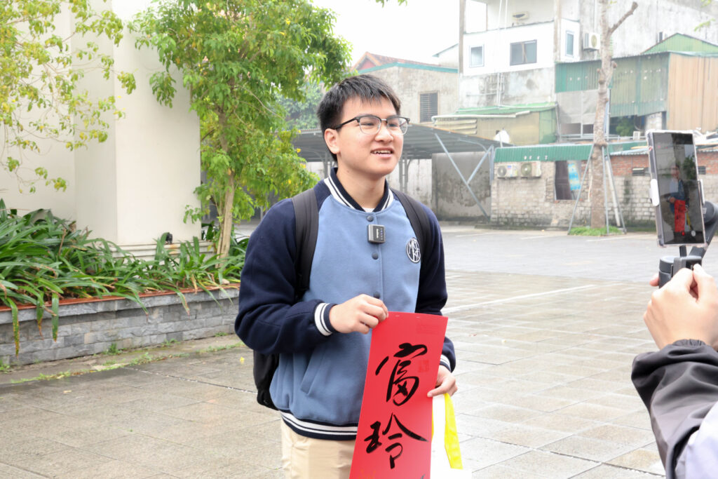 Hào hứng cầm trên tay bức chữ vừa nhận, bạn Lê Gia Hân (lớp 11T1, THPT Huỳnh Thúc Kháng) hào hứng: “Năm nay là lần thứ hai em ghé thăm gian tư vấn của Trường Đại học Trưng Vương. Từng nhận chữ Hiếu Học vào năm ngoái, năm nay bước vào lớp 12, em xin thầy chữ Đăng Khoa với hy vọng gặt hái kết quả cao nhất”.