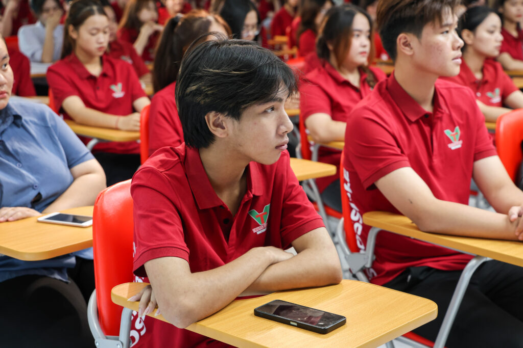 Phạm Như Nghệ – Phó Hiệu trưởng và ThS. Nguyễn Thanh Sơn – Trưởng phòng Đào tạo chia sẻ về các khoa, ngành đào tạo của trường, phổ biến chế độ học tập, quy định thi cử và cách tổ chức kỳ thi kết thúc học phần. Đây là những thông tin quan trọng giúp sinh viên định hình rõ con đường học tập của mình.