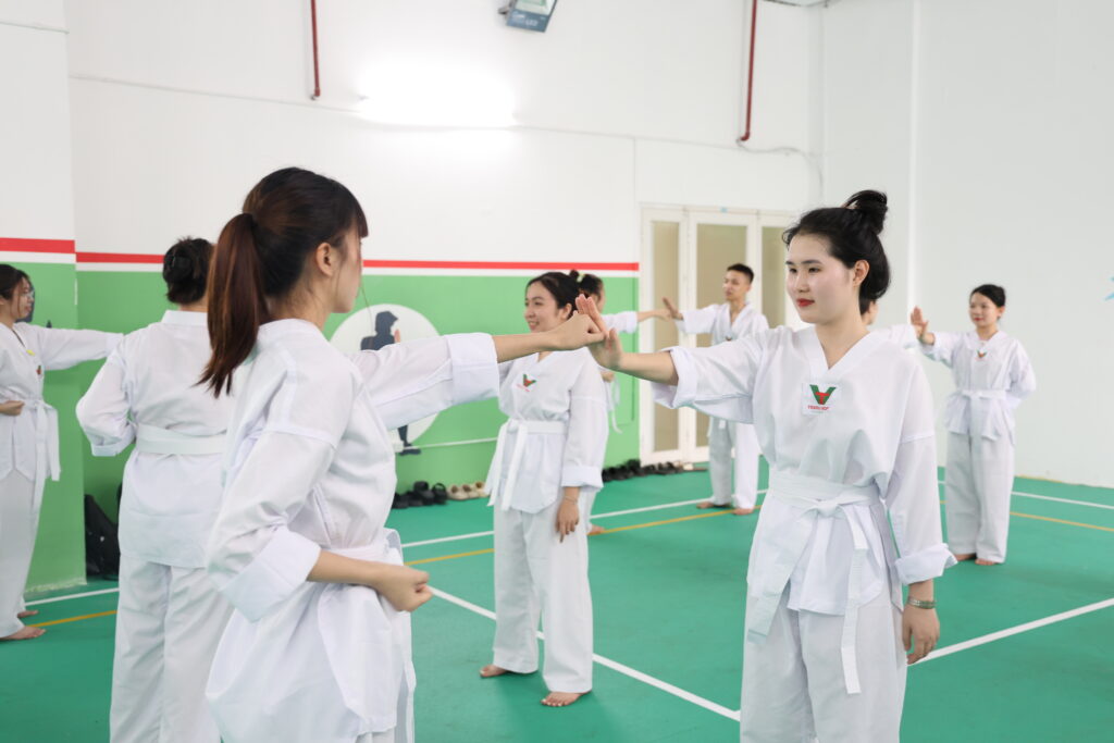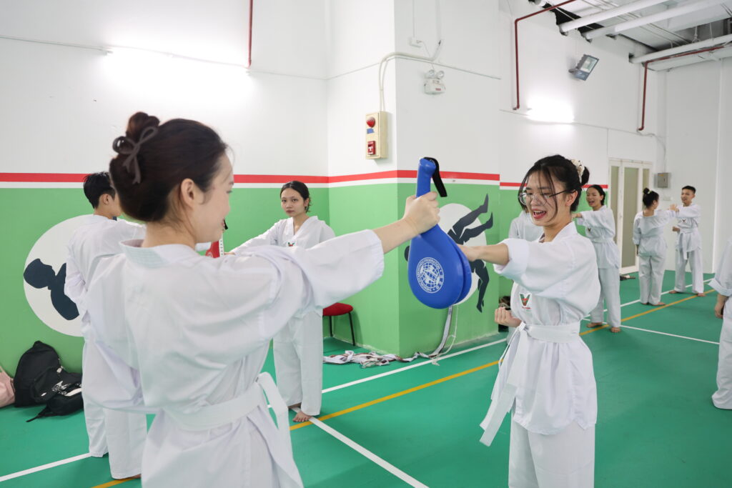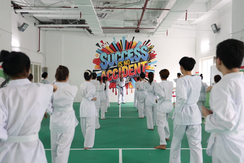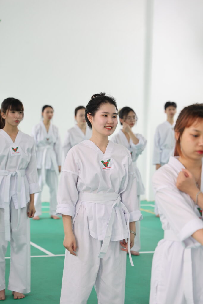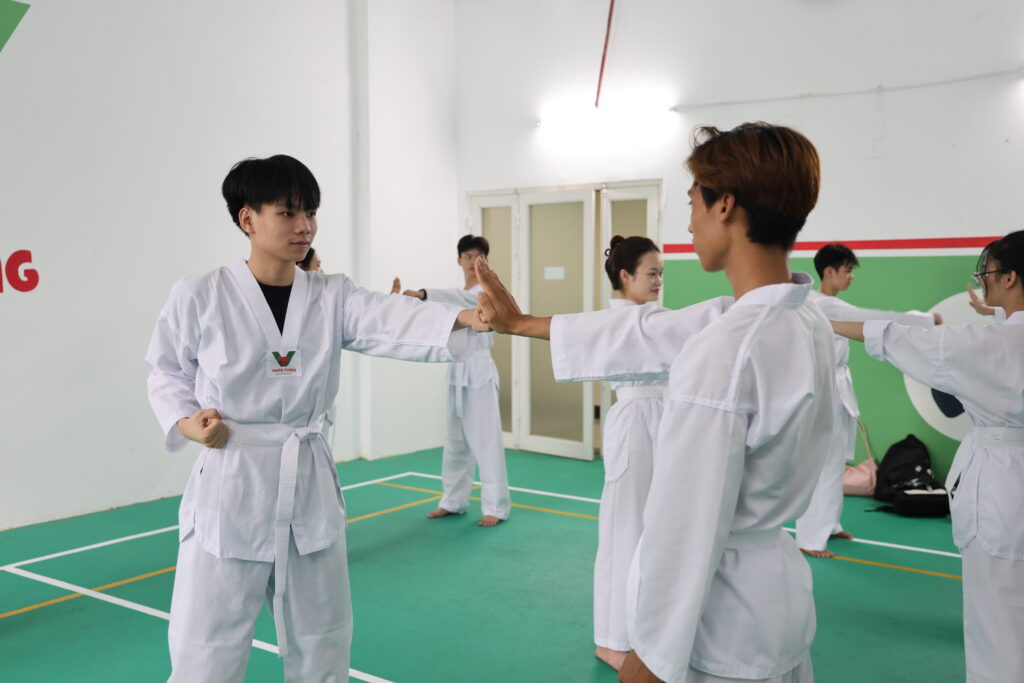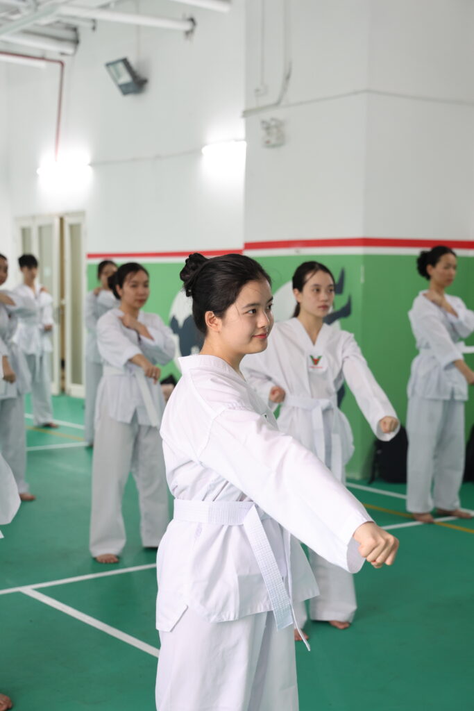 Trong buổi học đầu tiên, không khí tại sân thể chất của trường trở nên sôi nổi và đầy năng lượng. Các bạn sinh viên đã có cơ hội làm quen với những động tác căn bản, khởi động cơ thể và bắt đầu tiếp cận bộ môn võ thuật truyền thống đến từ Hàn Quốc.