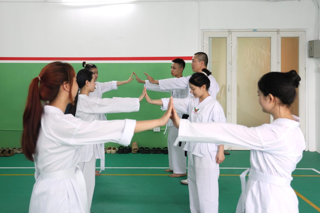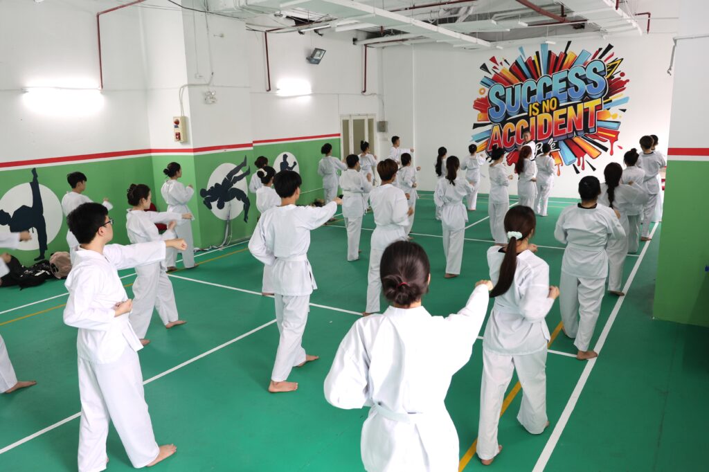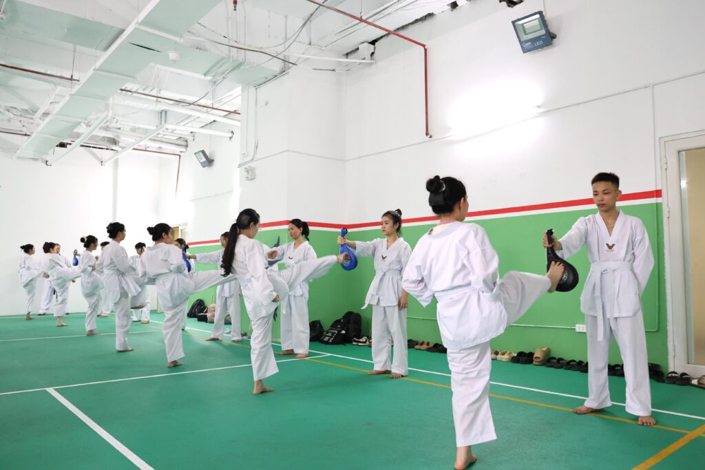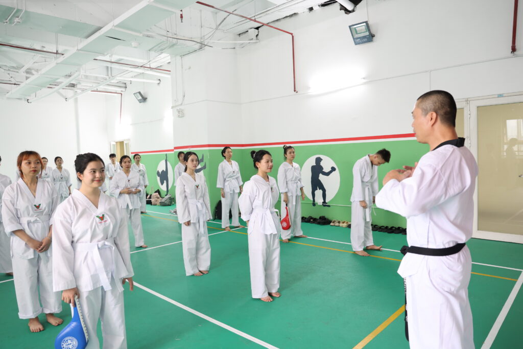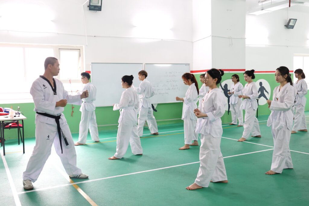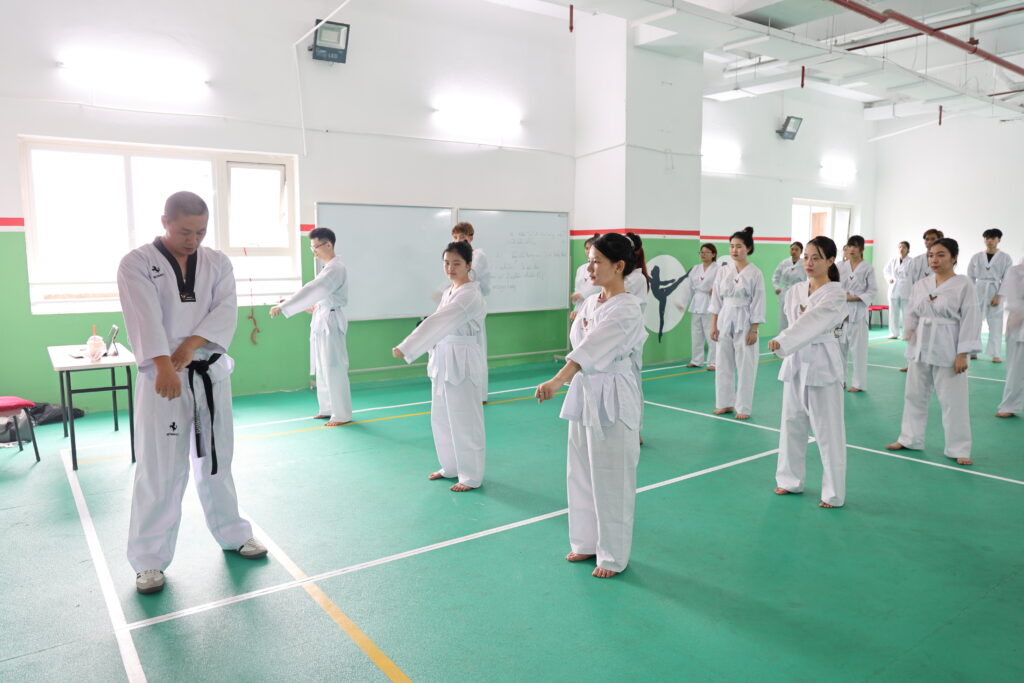Trong buổi học đầu tiên, không khí tại sân thể chất của trường trở nên sôi nổi và đầy năng lượng. Các bạn sinh viên đã có cơ hội làm quen với những động tác căn bản, khởi động cơ thể và bắt đầu tiếp cận bộ môn võ thuật truyền thống đến từ Hàn Quốc.
