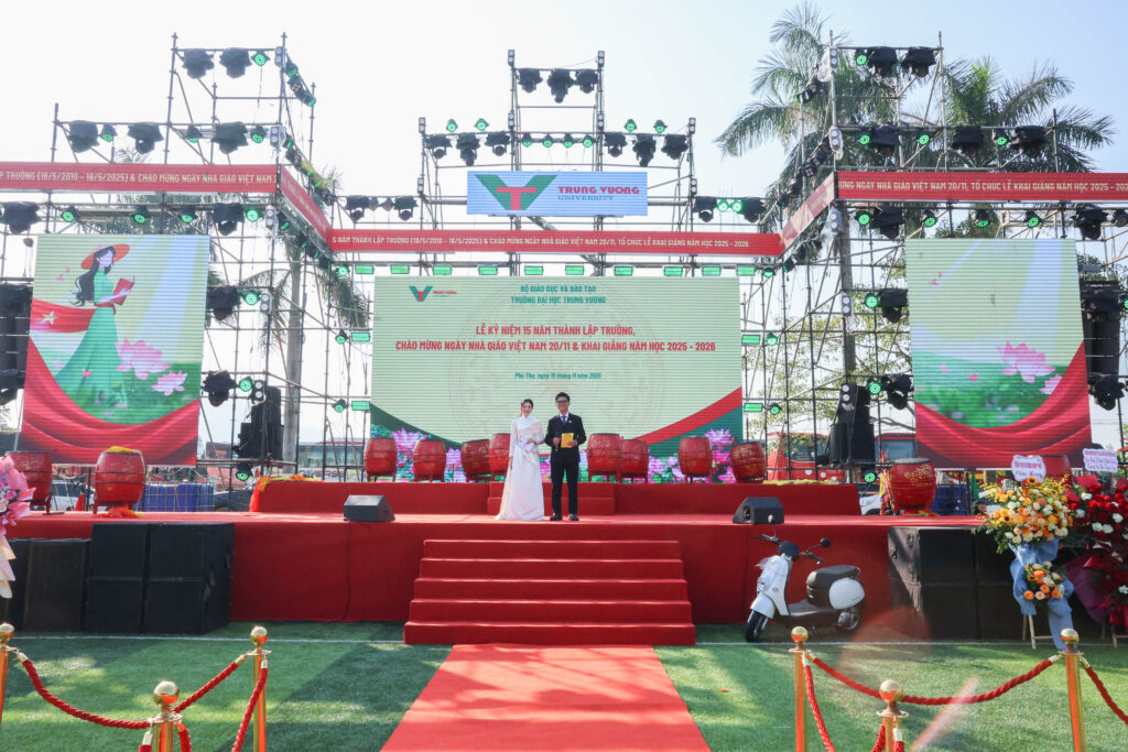 Sáng ngày 15/11/2025, trong không khí trang trọng và ấm áp, Trường Đại học Trưng Vương đã long trọng tổ chức Lễ kỷ niệm 15 năm thành lập trường, chào mừng Ngày Nhà giáo Việt Nam 20/11 và Khai giảng năm học 2025–2026. Sự kiện mang ý nghĩa đặc biệt, đánh dấu chặng đường phát triển bền vững của nhà trường trong suốt hành trình 15 năm xây dựng và khẳng định vị thế trong hệ thống giáo dục đại học Việt Nam.
