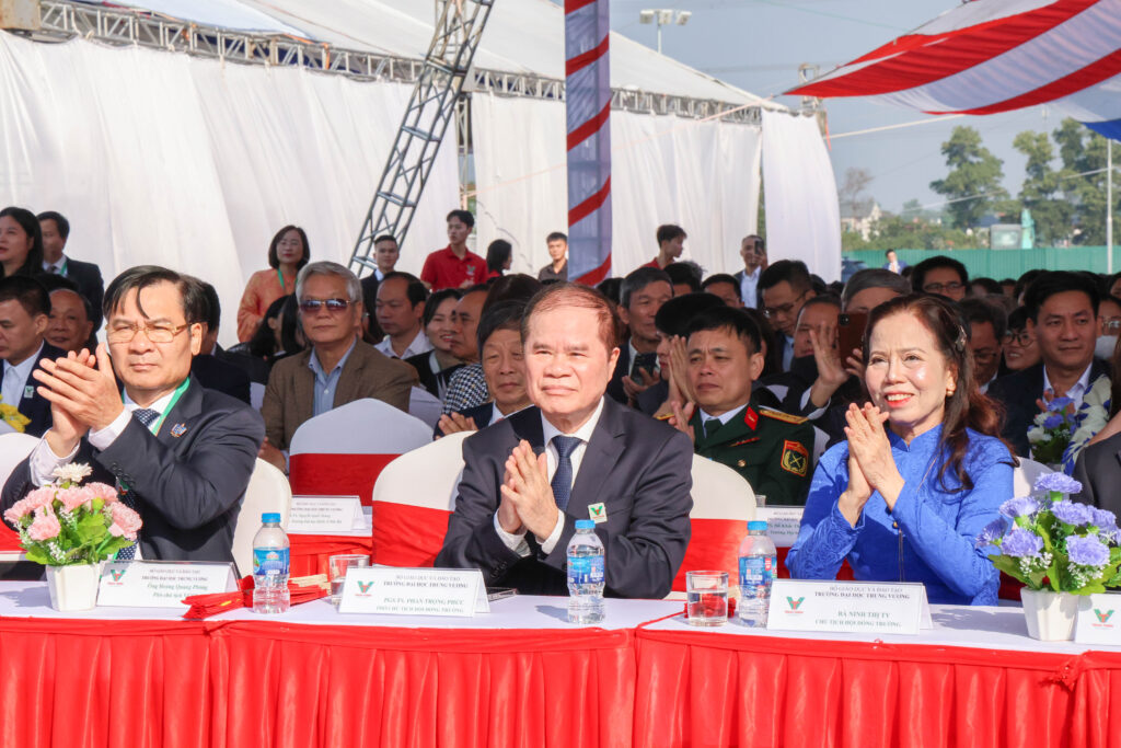 Trong bài diễn văn giàu cảm xúc, TS. Nguyễn Huy Oanh – Hiệu trưởng Nhà trường đã đưa mọi người trở lại những ngày đầu tiên đầy gian khó, từ khi Trường được thành lập theo Quyết định 700/QĐ-TTg. Từ một cơ sở đào tạo còn khiêm tốn, Trưng Vương hôm nay đã trở thành một trong những trường đại học có định hướng ứng dụng nổi bật, gắn bó mật thiết với nhu cầu phát triển của đất nước và khu vực.