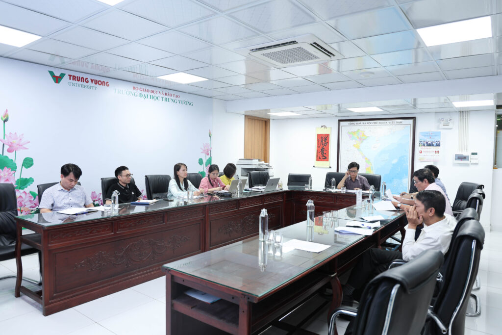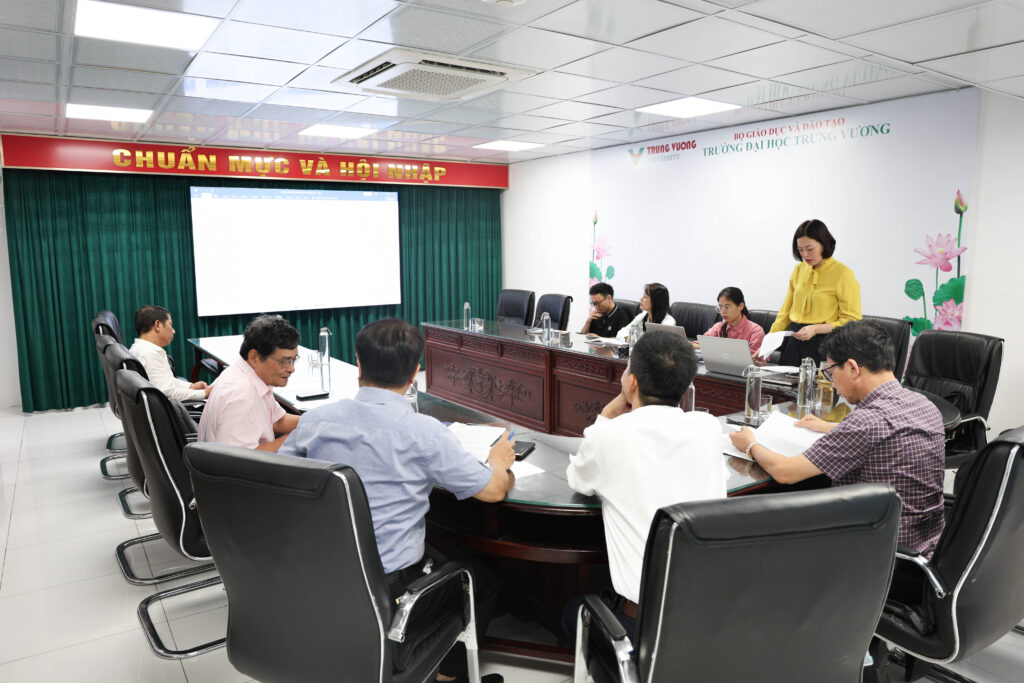 Buổi họp diễn ra với sự tham gia của Hội đồng thẩm định do TS. Nguyễn Thu Hương, giảng viên Khoa Kinh tế làm Chủ biên. Danh sách Hội đồng được thành lập theo Quyết định số 644/QĐ-ĐHTV ngày 19/7/2025 của Hiệu trưởng Trường Đại học Trưng Vương, bao gồm các chuyên gia, giảng viên có uy tín và chuyên môn cao trong lĩnh vực kinh tế và tài chính. Cụ thể: